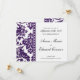 The combination of minimalist text and background with an intricate, shimmering, deep aubergine purple damask border sets this wedding design apart. The striking floral damask sweeps and curls lavishly up to a diamond-studded edge, beyond which is the save the date wording - completely customisable by you.