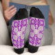 Original digital artwork on these fun socks featuring a vintage, retro and old-world style tile pattern in purple and grey. These playful crazy socks are considered a sustainable product and are printed with water-based inks. Cosy and comfy and make a great gift. One size truly fits all.