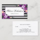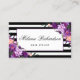 Elegant Purple Ultra Violet Watercolor Floral Framed with Black & White Stripes Hair Stylist Appointment Card