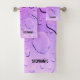 Purple Violet Water Drop Abstract Custom Name Bath Towel Set