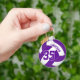 This personalised volleyball keychain features a purple and white volleyball upon which you can customise the player's name and jersey number - by katz_d_zynes