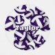 This volleyball themed ornament is printed on the front and back with the image of a cluster of varied size purple and white volleyballs - customise with the athlete's name on the front and commemorative year on the back - by katz_d_zynes