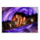A digital image of a hand grasping onto a guitar neck while being sucked into a swirling purple vortex like a psychedelic black hole.