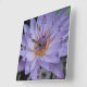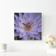 This custom wall clock has a purple water lily blossom with a honeybee on it.
