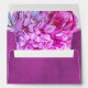 Purple watercolor flowers and pumpkins fall wedding envelope. This lovely wedding design features a stained background in purple on the outside. The inside includes a bouquet of purple watercolor flowers and pumpkins.