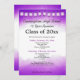 This vertical format high school class reunion invitation design features purple watercolor top and bottom borders and lanterns along the top. Personalise your information, remove information or click customise to select a typeface colour, size, and style your prefer.