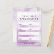 Appointment cards with template fields for your contact information and logo on the back. Soft purple watercolor background. Font and font colours can be changed with the design tool.