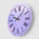 Free your inner decorator! Wall clocks are an inexpensive and beautiful addition to any room. This gorgeous wall clock has a purple or violet watercolor design, with Roman numerals for numbers. This stunning wall clock would look great in a kitchen, bedroom, or living room. It's easy to read, inexpensive and makes a great housewarming or other gift.