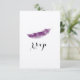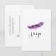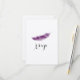 A wedding rsvp featuring a watercolor inspired illustration of a purple feather.