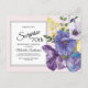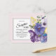 Elegant and botanical purple and yellow watercolor floral on pink surprise 70th birthday party invitation postcard.