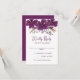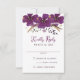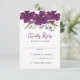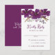 A pretty RSVP card featuring lovely violet purple watercolor flowers accented by little gold dots filled with a digital glitter effect.