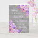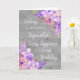 Birthday card for happy birthday card for stepmother with purple watercolor flowers, rustic grey wood pattern and thoughtful verse.