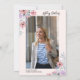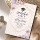 Beautiful design of Fashionable Invitation, with pink summer floral watercolor and purpura with gold purine Confeti typography graduation party the design can be customized with his photo in the back as well as the details of the Party.