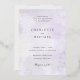 Elegant wedding invitation, featuring a purple watercolor wash and silver foil spatter.