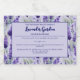 This floral editable soap box label measures 3 inches by 2 inches (76 mm by 51 mm) and is waterproof. It features a background with lavender flowers and a purple area containing navy blue text with space for your company name, product name, ingredients, product description, and business contact information. This label is designed as a label for soap boxes or soap bars, but it could also be used a a label for cosmetic jars or candles.