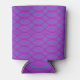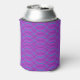This can cooler has a Boho design of purple and turquoise waves on a field of light purple.