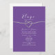 Invite your loved ones to celebrate your private ceremony with this elegant purple wedding reception invitation. Featuring a romantic silver rope heart, minimalist violet background, and sophisticated calligraphy script, it's the perfect announcement for elopements, intimate weddings, or small gatherings.