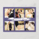 Gorgeous purple frame with a banner ribbon and cursive typography on the front of this designer postcard which you can upload into with 6 of your own engagement/wedding photo portraits. Easily and quickly personalise this designer professionally printed wedding thank you postcard here and now by just typing over the example text and adding your own photographs. Elegant, chic, simple and classy script/cursive typography.