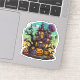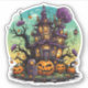 Spread Halloween cheer with this whimsical purple house with jack-o-lanterns in the front yard. The pumpkins smile happily as the windows glow against a yellow and green sky. This cute sticker is suitable for handing out as a "treat", giving as a classroom reward, or decorating your laptop. You can even put it on your water bottle because it's waterproof.