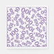 This numerical design is a purple and white random number pattern with a purple milestone number 100 repeated in varied sizes and angles over a white background and framed with a narrow purple square around the edges.