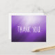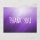 An abstract gradient background of dark purple to light with bright spot with a "thank you" text message in a handwritten style font. You can try a different font face and colour to create your own personalised postcards.