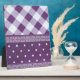 Purple White Chequered Polka Dot Floral Damask Art Plaque