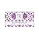 Monogram Wedding Invitation Address Label with Purple and white damask. Customise with your monogram initial, name and address details. Design by Elke Clarke ©. Graphics licensed.
