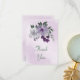 Beautiful botanical thank you card featuring romantic purple lavender and white flowers with green leaves