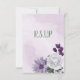 Beautiful botanical wedding response card featuring romantic purple lavender and white flowers with green leaves