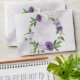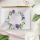 beautiful purple and white flowers green leaves botanical gold wreath wedding envelope