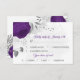 Romantic royal purple & white flowers with silver leaves botanical wedding response card with meal choice option.