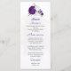 Romantic royal purple & white flowers with silver leaves botanical wedding menu card.