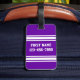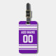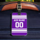 Purple White Football Stripes Custom Name Number Luggage Tag