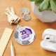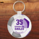 This kids' soccer keychain with purple and grey school colours for girls features a classic soccer ball with purple, grey and white panels - customise the player's name and jersey number plus school and team mascot name - by katz_d_zynes