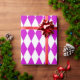 Purple White Harlequin Diamonds Checkers Design Wrapping Paper