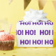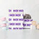 This wrapping paper features a pattern of 'Ho Ho Ho' in purple on white background.