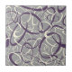 This playful geometric pattern ceramic tile features intertwined purple and off-white oval shapes on a medium grey background - by katz_d_zynes