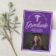 This purple custom medical school graduation announcement for a nurse or doctor features classy white typography under a medical caduceus and your college name for the class of 2025. Customise with your graduating year under the elegant calligraphy for a great personalised university graduate card.