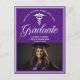 This custom purple medical school graduation announcement postcard for a nurse or doctor features classy white typography under a medical caduceus and your college name for the class of 2024. Customise with your graduating year under the elegant calligraphy for a great personalised university graduate postcard.