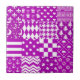 Purple and White Mixed Patterns Patchwork Design of 16 Different Design illustration of Fleur-de-lis, crowns, hearts, Polka Dots, Greek key, Moon stars, Houndstooth, Trees, Harlequin, Stripes, Check, umbrella, anchor, Chevron, blob and flower floral illustration Designs.