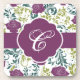 Purple & White Retro Style Roses Pattern Monogram Coaster