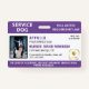 Horizontal service dog ID badge in purple and white with room for a photo of the service dog and a logo. Add name, title, and registration number. Add the handler's name and contact information too.