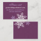The text on these raisin purple (aubergine), lavender purple, and white winter snowflake wedding website information insert cards is fully customisable. To change it use the personalise option. For more extensive changes, including changes to the font, font colour, font size, or text placement, use the customise option. Note, these are ordered in batches of minimum 100. With changes to the text, these could be made into reception or accommodation insert cards. Matching Items you might be interested in: Invitations