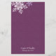 You can customise the text on this raisin purple, lavender purple, and white snowflake winter wedding or special occasion menu card. To change the text, use the personalise option. For more extensive changes to the menu, including changes to the font, font sizes, font colour, or text placement, use the customise it option. A beautiful choice for a purple themed wedding in the winter or any other special occasion such as a retirement, anniversary, or birthday party. Matching Items you might be interested in: Invitations
