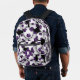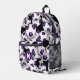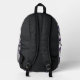 This cool soccer backpack features varied size purple and white soccer balls turned every which way in a 3D-look pattern on a black background - customise with the soccer player's monogram - by katz_d_zynes