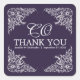 Purple & White Wedding Thank You Monogram Square Sticker