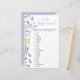 Baby Animal Name Game sheet, with editable game instructions - fun quiz game to play at your wildflower baby shower. This design has Baby Animals hand lettered in elegant script callipgraphy and watercolor wild flowers in shades of lilac, lavender, purple, pink and blue. This delicate and feminine botanical design has a pretty border of wildflowers .. dainty modern floral with girly, bohemian cottage garden theme. Please see my Purple Wildflower collection for matching items or, message me to create the templates you need.