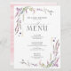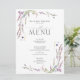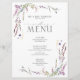 Create the perfect reception setting with this trendy 6.5"x 8.75" menu design featuring pretty and delicate, trendy wildflowers. Personalise your details accented with beautiful modern hand lettered calligraphy in soft off-black. Perfect for, but not limited to, that backyard and garden wedding. Part of a matching set. See full collection here: https://www.zazzle.com/collections/purple_lilac_lavender_wildflower_wedding-119347990909221303. Copyright Elegant Invites, all rights reserved.