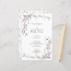 Create the perfect reception setting with this trendy 5.5"x 8.5" menu design featuring pretty and delicate, trendy wildflowers. Personalise your details accented with beautiful modern hand lettered calligraphy in soft off-black. Perfect for, but not limited to, that backyard and garden wedding. Part of a matching set. See full collection here: https://www.zazzle.com/collections/purple_lilac_lavender_wildflower_wedding-119347990909221303. Copyright Elegant Invites, all rights reserved.