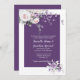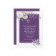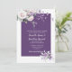 Watercolor purple wildflowers and blush pink roses on a purple frame with white lettering. The back of the card is purple. The text boxes are easy to personalise with your own information. The text is a mix of modern and ornate calligraphy fonts.